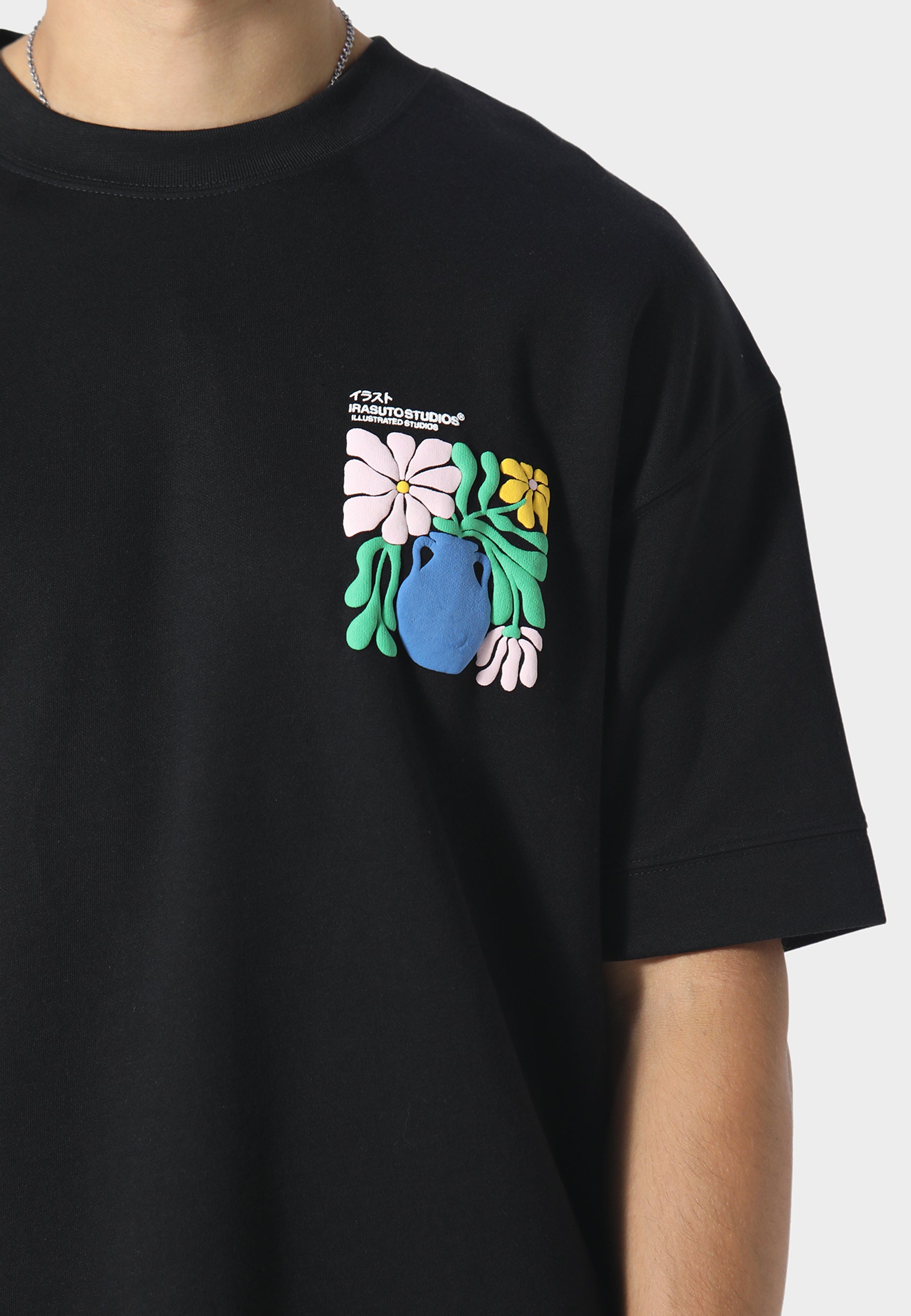 A bold floral still life reimagined in vibrant puff print. The Hikari Bloom T-Shirt features a front and back vase and flower graphic with sculptural depth and colour. Cut in a relaxed fit from premium heavyweight cotton. A statement piece that speaks in full colour.