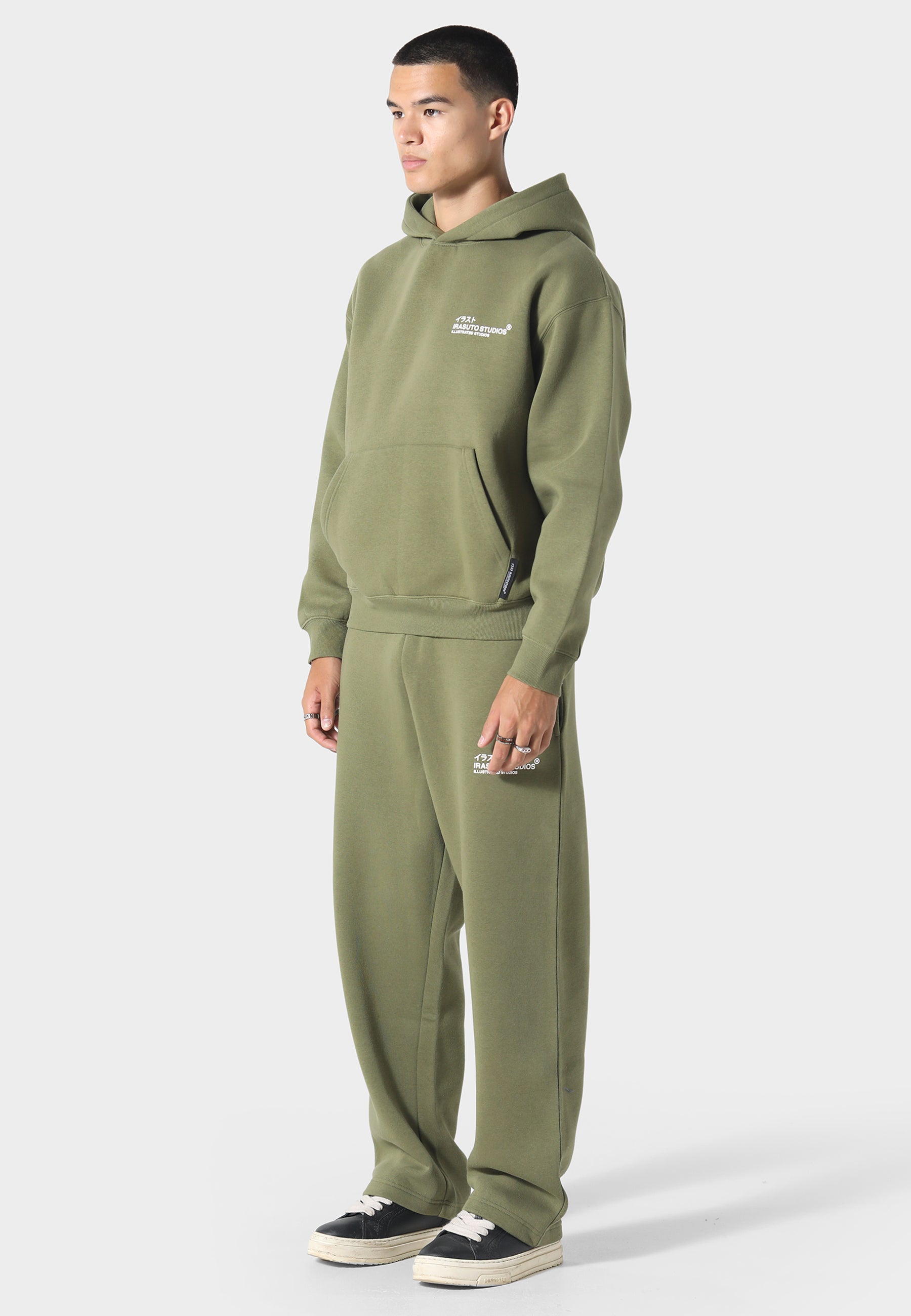 The Koi Khaki Hoodie is crafted from heavyweight brushback fabric, offering warmth with structure and softness. Featuring a minimalist chest logo on the front, the back showcases a flowing koi fish graphic — symbolizing strength and perseverance — accented by bold red puff print sun details. A relaxed fit and kangaroo pocket complete this elevated streetwear staple, where tradition meets modern form.