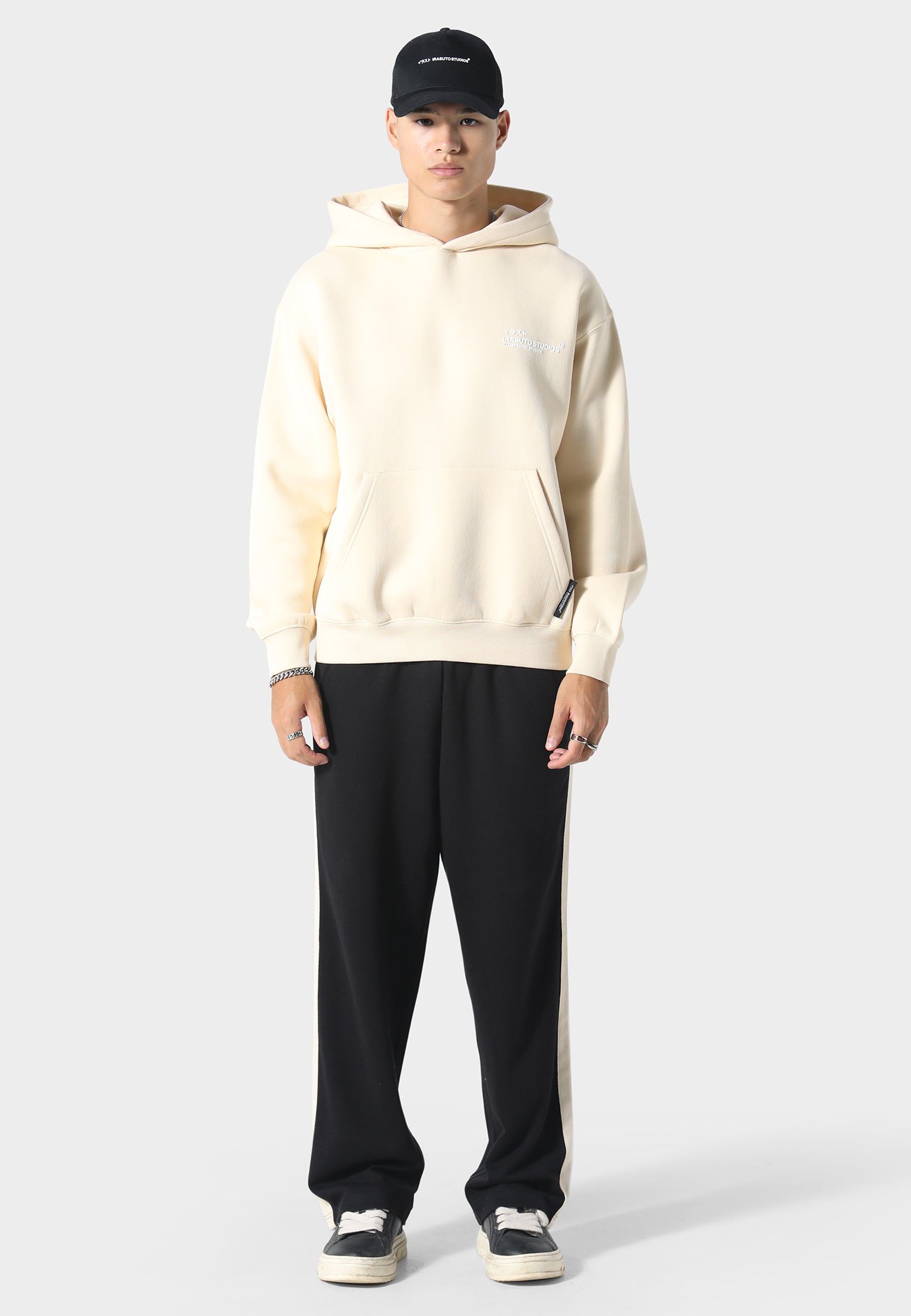 The Koi Sand Hoodie is crafted from heavyweight brushback fabric, offering warmth with structure and softness. Featuring a minimalist chest logo on the front, the back showcases a flowing koi fish graphic — symbolizing strength and perseverance — accented by bold red puff print sun details. A relaxed fit and kangaroo pocket complete this elevated streetwear staple, where tradition meets modern form.