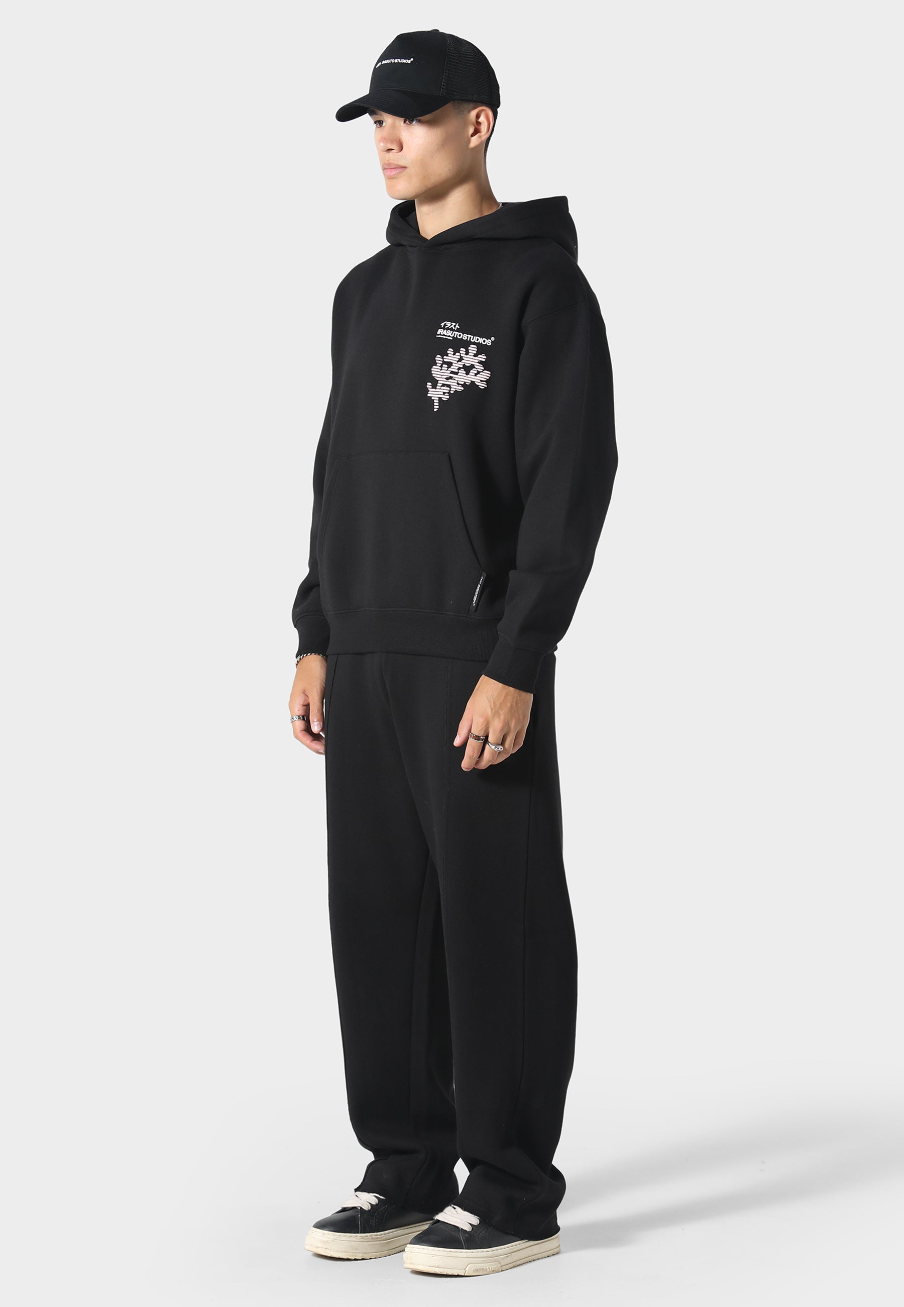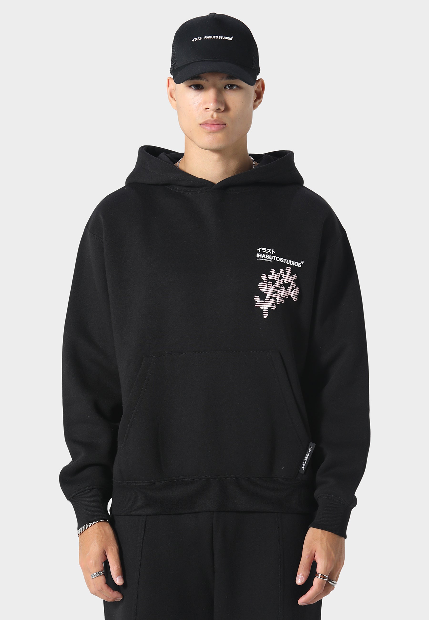 A statement piece for cooler days, the Sakura Wave Hoodie blends Japanese sakura motifs with abstract wave detailing in a layered puff print. Cut from heavyweight brushback cotton for structure and warmth, it features a kangaroo pocket and signature Irasuto Studios branding on front and back. Designed for comfort, finished with a bold visual identity.