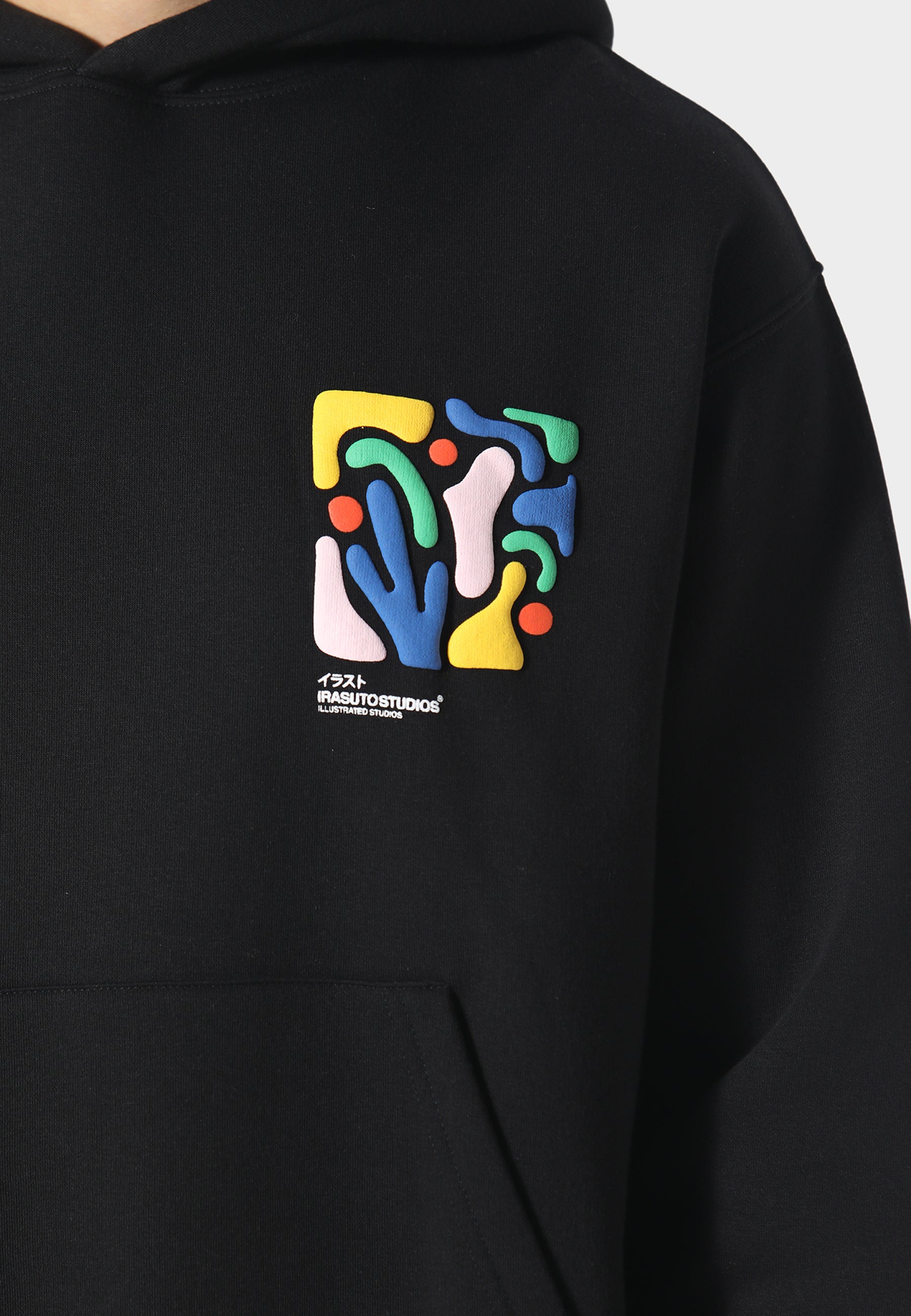 A bold fusion of form and colour, the Shikaku Form Hoodie in black features an abstract composition printed in raised HD puff across the chest and back. Cut in a relaxed fit, it blends graphic playfulness with everyday comfort—making it a standout in colder months.