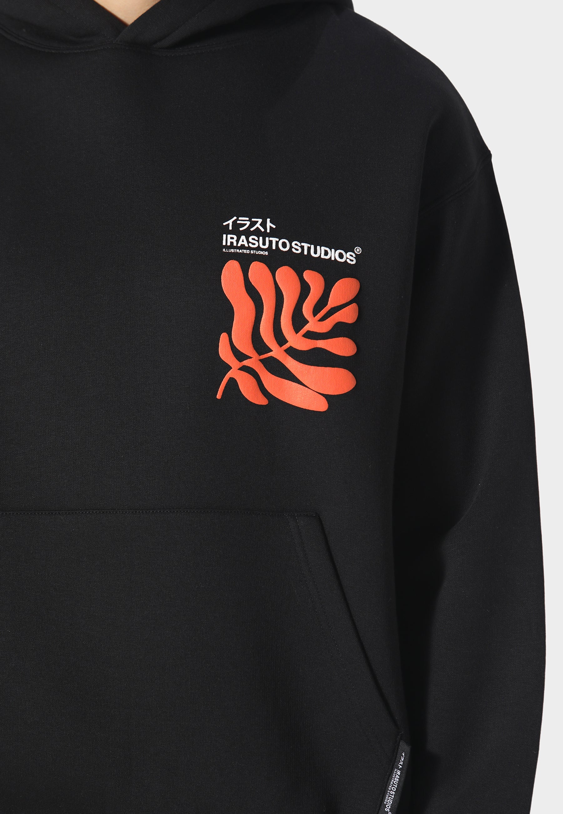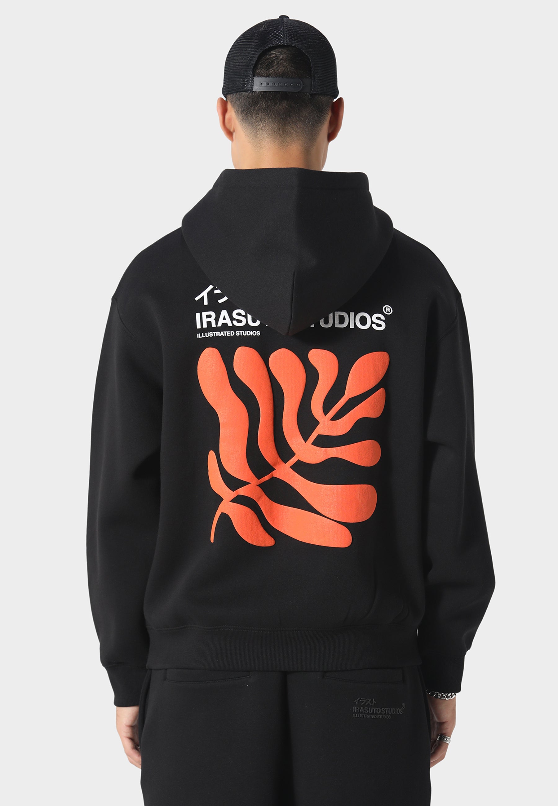 Crafted from heavyweight brushback cotton, the Sumi Flow Hoodie features a bold puff-printed leaf motif in vivid orange — a fluid symbol of movement and growth. Finished with front and back branding and a structured silhouette for comfort and warmth. A clean staple with elevated texture.