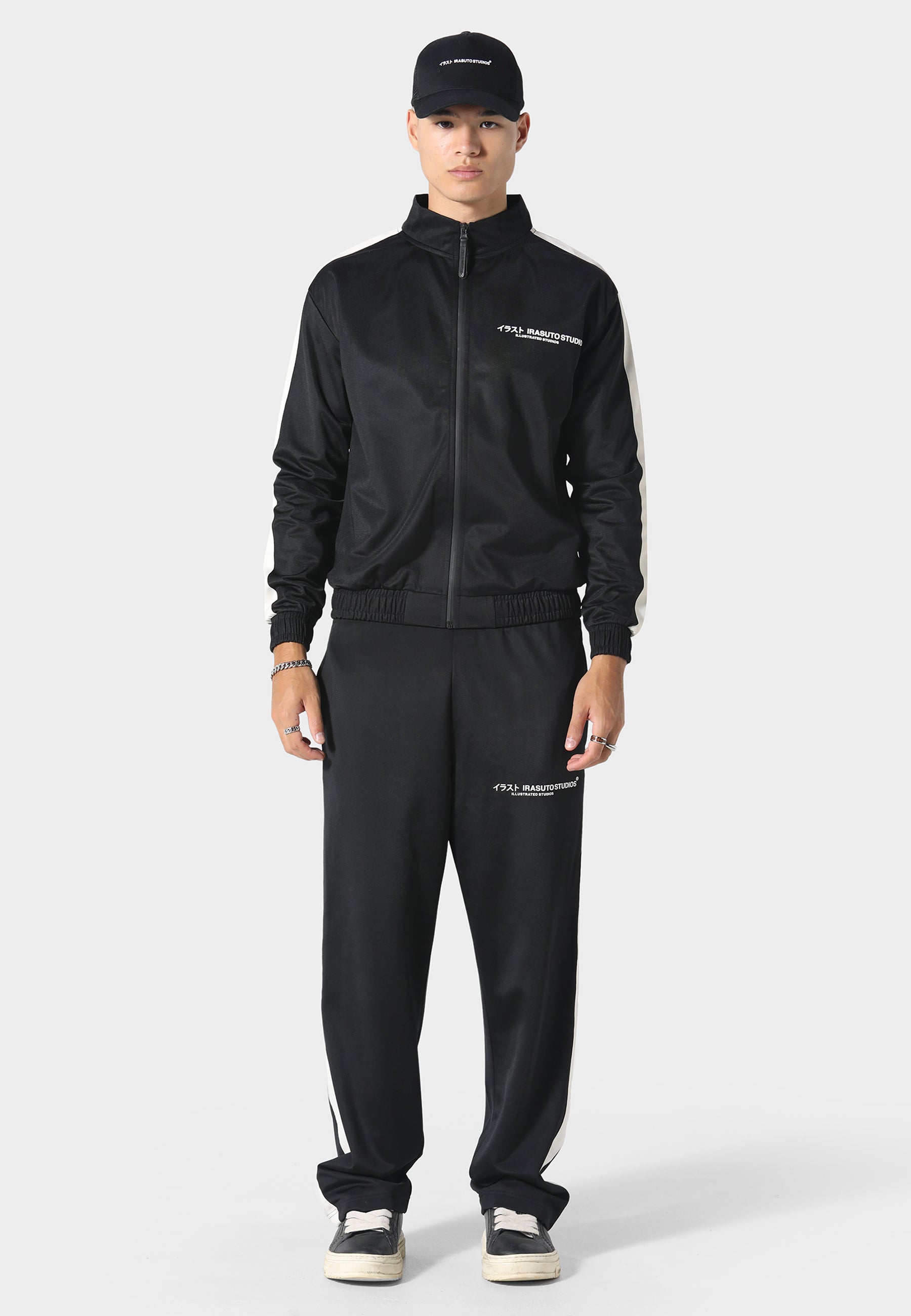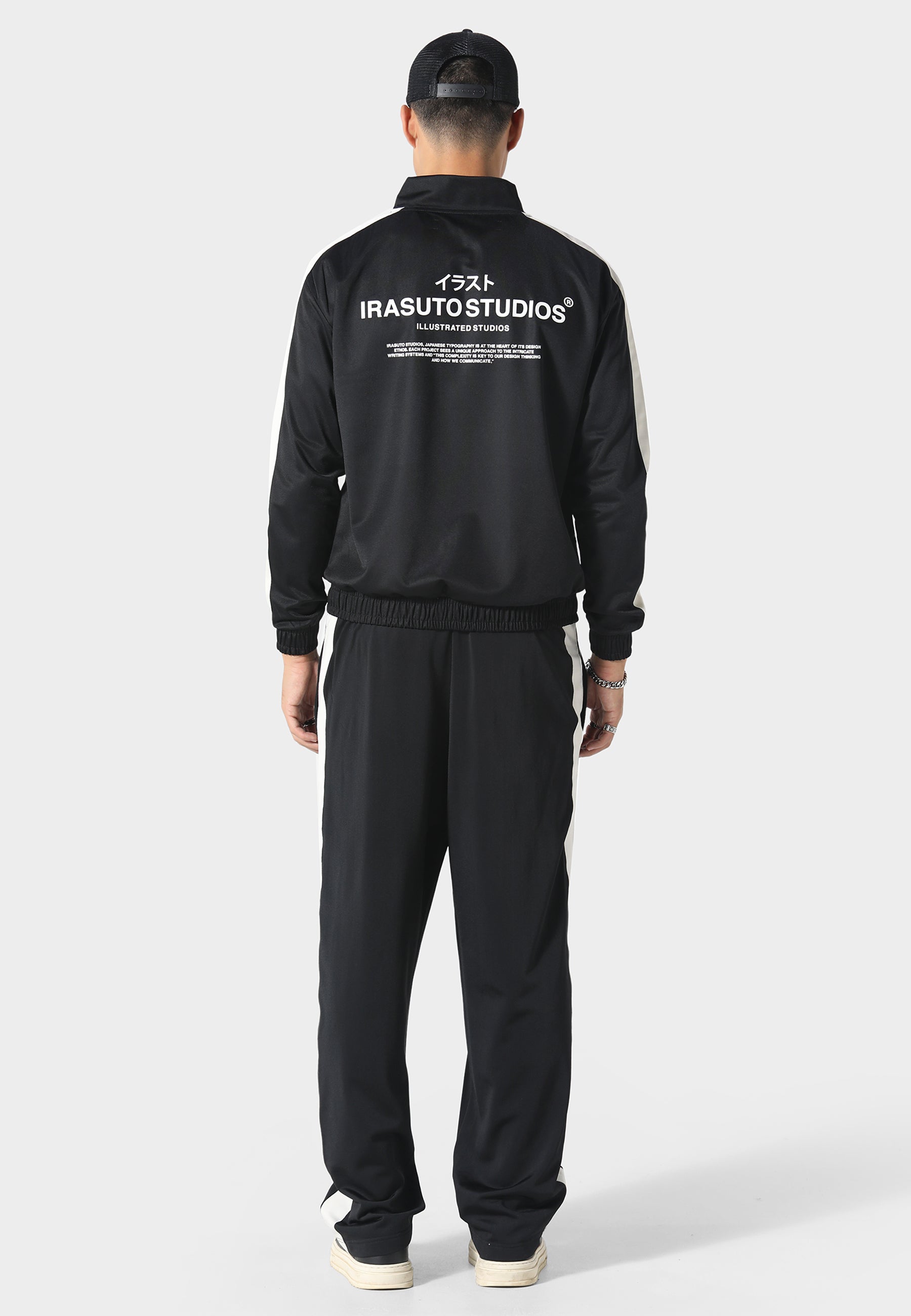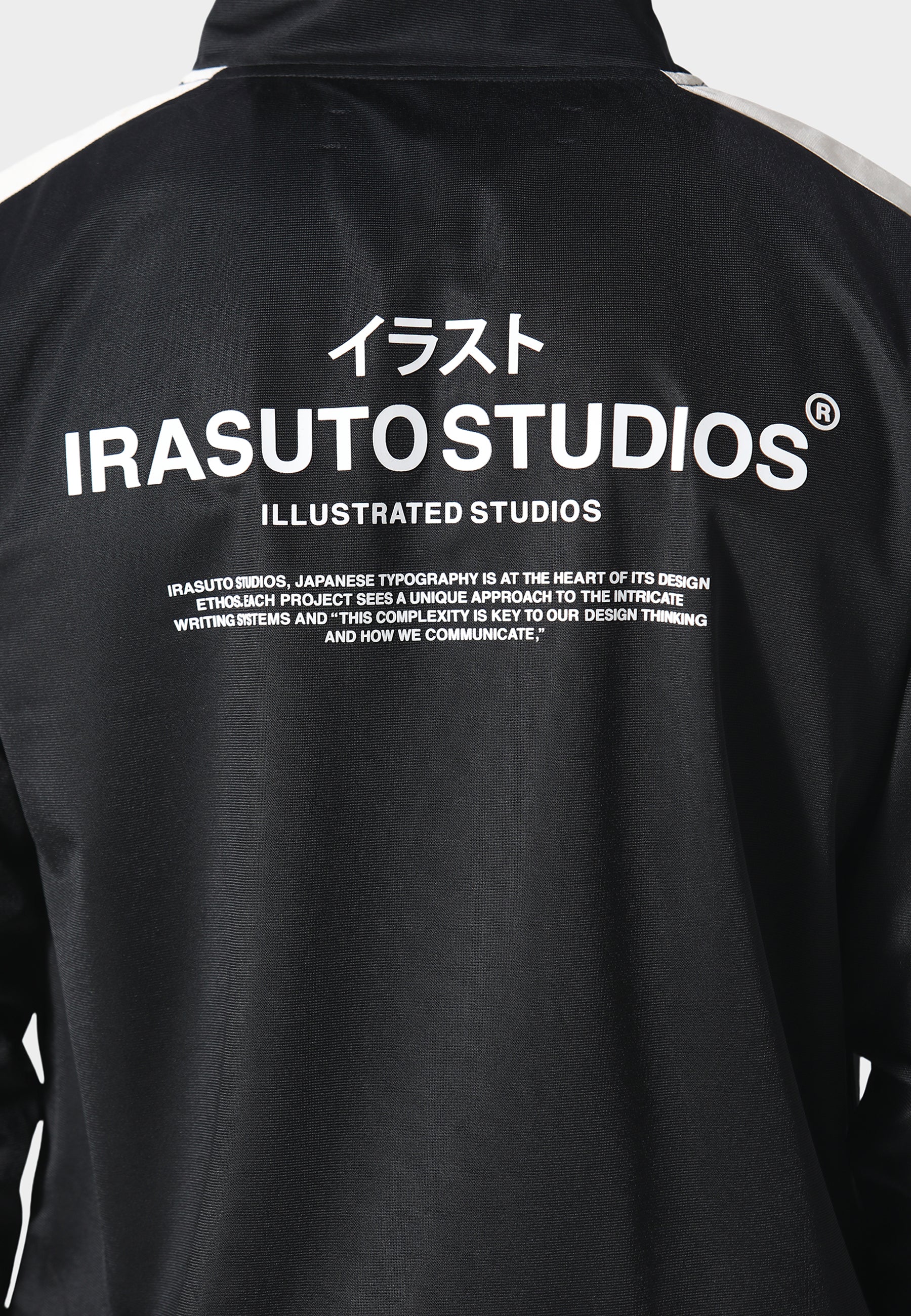 A clean athletic staple with a streetwear edge. The Tricote Black Track Top features a smooth zip-up design, contrast stripe sleeves, and a structured stand collar. Finished with a screen-printed Irasuto Studios logo on the chest & back, it’s built for comfort, movement, and everyday wear.
